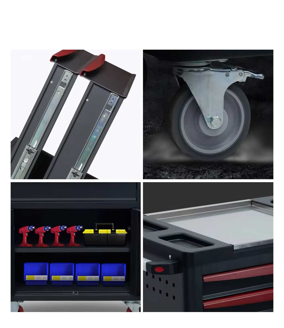 Tủ dụng cụ được làm bằng thép cường độ cao hoặc thép tấm cán nguội chất lượng cao làm vật liệu chính, được chế tạo thông qua quy trình xử lý bề mặt và gia công tinh xảo. Nó kết hợp các khái niệm thiết kế hiện đại và chức năng thực tế, cung cấp các giải pháp lưu trữ công cụ hiệu quả, ngăn nắp và an toàn cho các địa điểm sản xuất, văn phòng, trường học và các dịp khác. — Chất liệu thép cán nguội chất lượng, dễ lau chùi — Hoàn thiện sơn tĩnh điện thân thiện với môi trường, không mùi và không phai màu — Cấu trúc lắp ráp hoàn chỉnh, không cần lắp đặt — Hệ thống khóa trung tâm, tất cả các ngăn kéo đều có thể khóa được. — Sáu hoặc bảy ngăn kéo, đáp ứng các nhu cầu lưu trữ khác nhau — Bốn bánh xe ở phía dưới, dễ dàng di chuyển tủ đến bất cứ đâu — Có thể làm bất kỳ màu nào