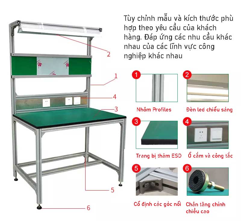 Bàn làm việc chống tĩnh điện song phương nhôm định hình Dây chuyền sản xuất nhôm định hình công nghiệp